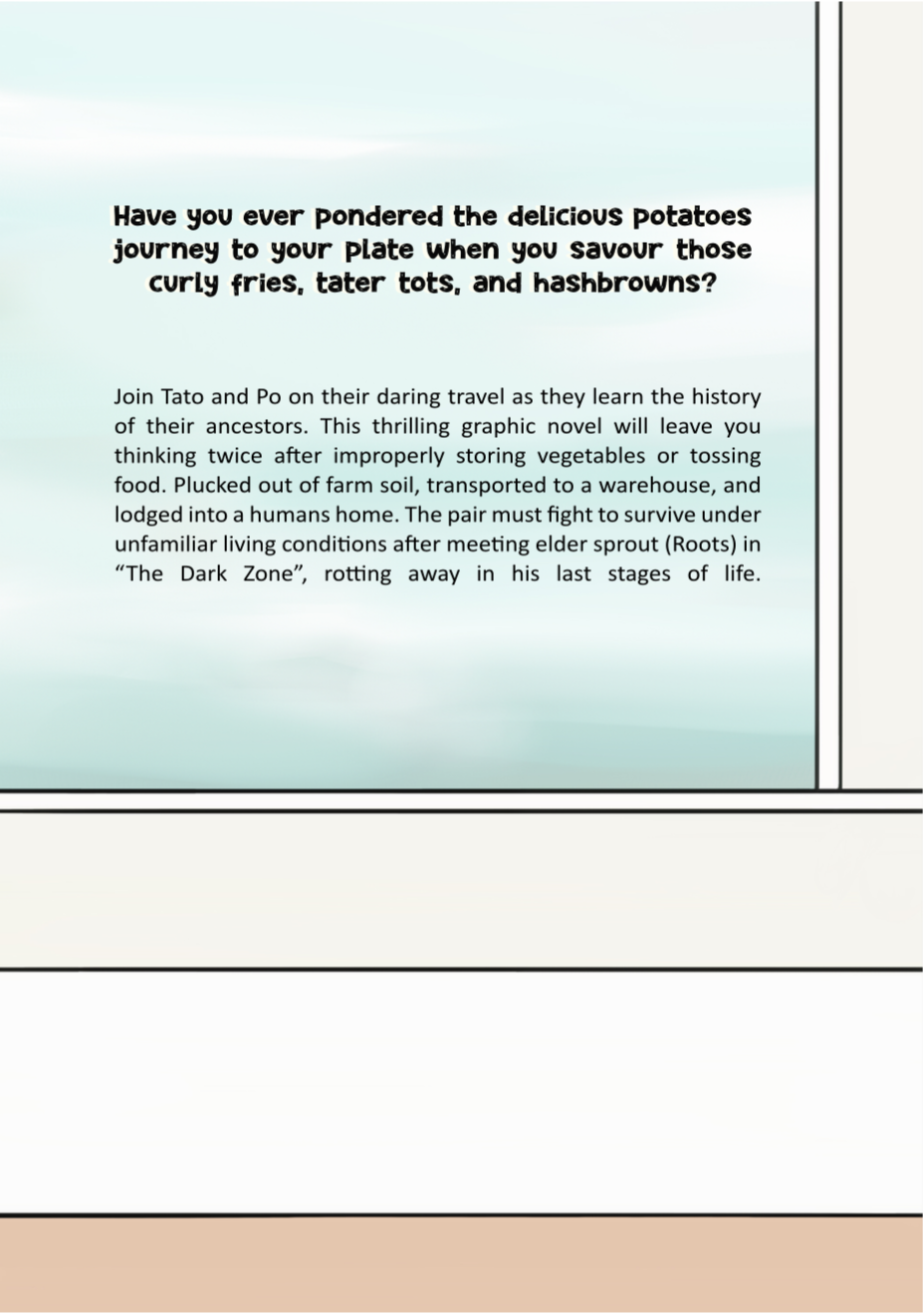 Food Waste, Friendship, and Propagation. Inspired by childhood series such as VeggieTales and Small Potatoes, with minimal scary undertones suitable for ages 10 and above.